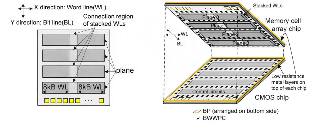 图2:基于铠侠CMOS直接键合阵列(CBA)架构的BICS10 3D NAND闪存芯片,通过电路紧凑化实现了更高的面积效率。(来源:铠侠)