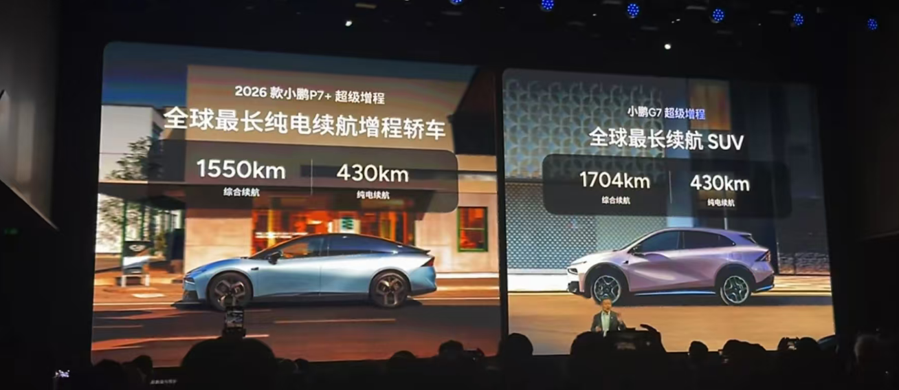 2026款P7+、小鹏G7都推出了增程版,小鹏G7增程版直接刷出了1704公里的全球SUV综合续航记录。此外,两款车型相较于纯电车型都在配置和设计上做出了一些变化。小鹏汽车第二代VLA将于2026年3月开启首批车辆推送。